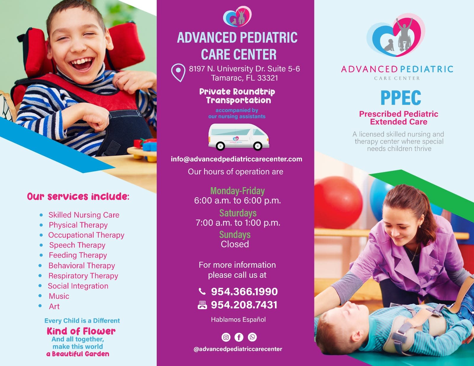 Advanced Pediatric Care Center, Inc. is a dedicated pediatric nursing care facility committed to providing compassionate, high-quality care to infants, children, and adolescents. Our multidisciplinary team includes two Registered Nurses, two Home Health Aides, and six licensed therapists, all working collaboratively to support the medical, emotional, and developmental needs of every child we serve.