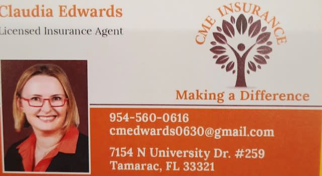CME Insurance Back to Search CME Insurance Categories Insurance 7154 N University Dr. #259 , Tamarac , FL , 33321 9545600616 Images Images × Contacts Claudia Edwards Insurance Share × Print Email Facebook LinkedIn X Pinterest Powered By GrowthZone