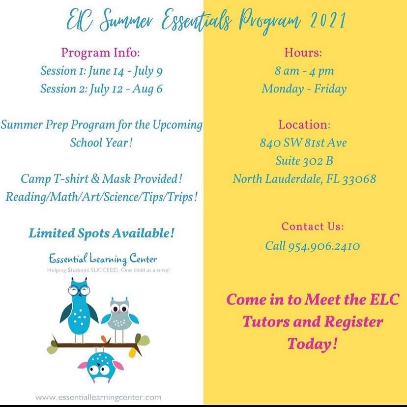 Essential Learning Center, located in North Lauderdale, Florida, provides personalized tutoring and educational enrichment for students of all ages. Their team of certified educators offers instruction in a variety of subjects including reading, phonics, math (such as pre-algebra, algebra, and geometry), Spanish, science, and standardized test preparation. The center focuses on creating individualized learning plans based on free assessments to help students improve confidence, excel in homework, and achieve academic success. They also offer affordable summer camps that combine academic support with fun activities to encourage both learning and social growth.