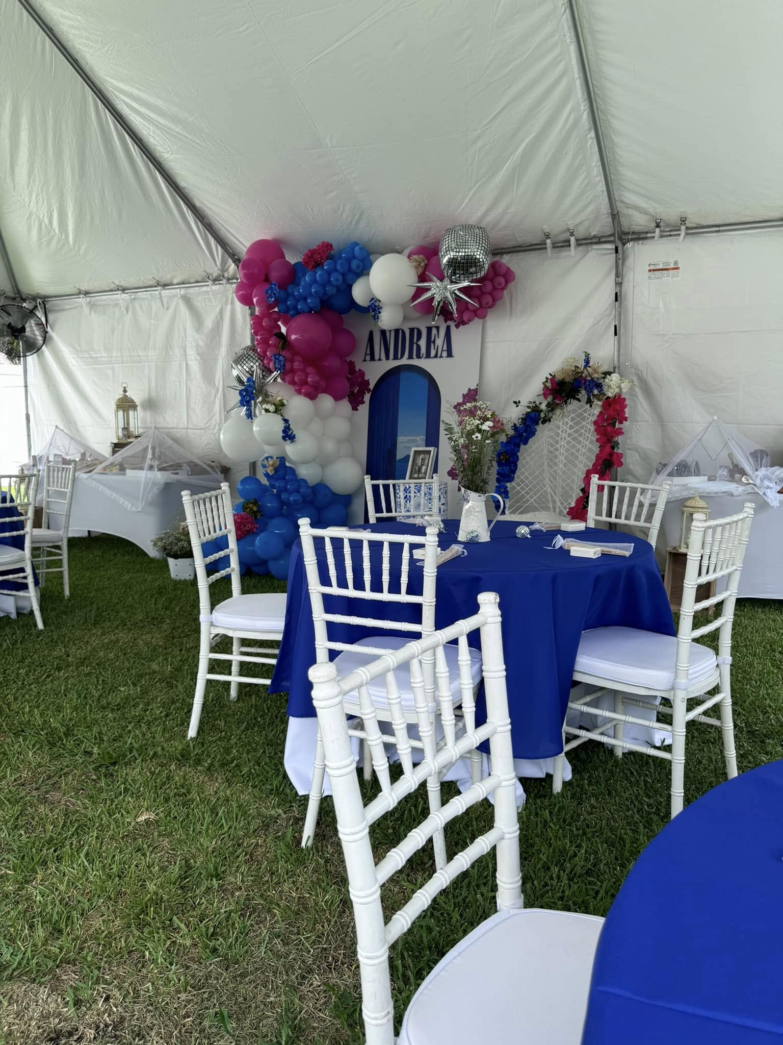 We offer various sized tents, staging, chiavari chairs, linens, decor, lighting, event staffing, a variety of inflatable bounce houses and slides, mechanical rides and many other rentals to complete your event. We also carry a plethora of options for food catering and a wide range of promotional items including flags, banners, fly guys, and much more…
