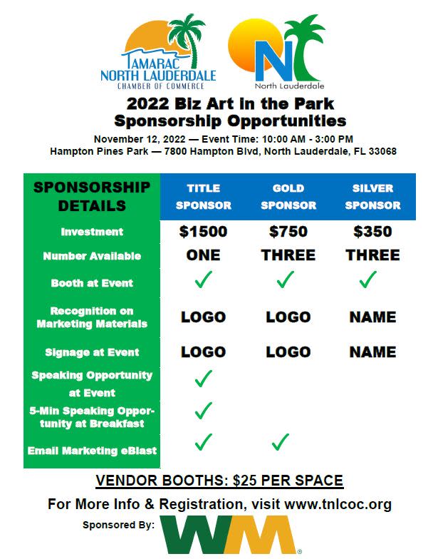 Please contact the Chamber office for booth space 9547221520 peter@tamaracnorthlauderdale.org