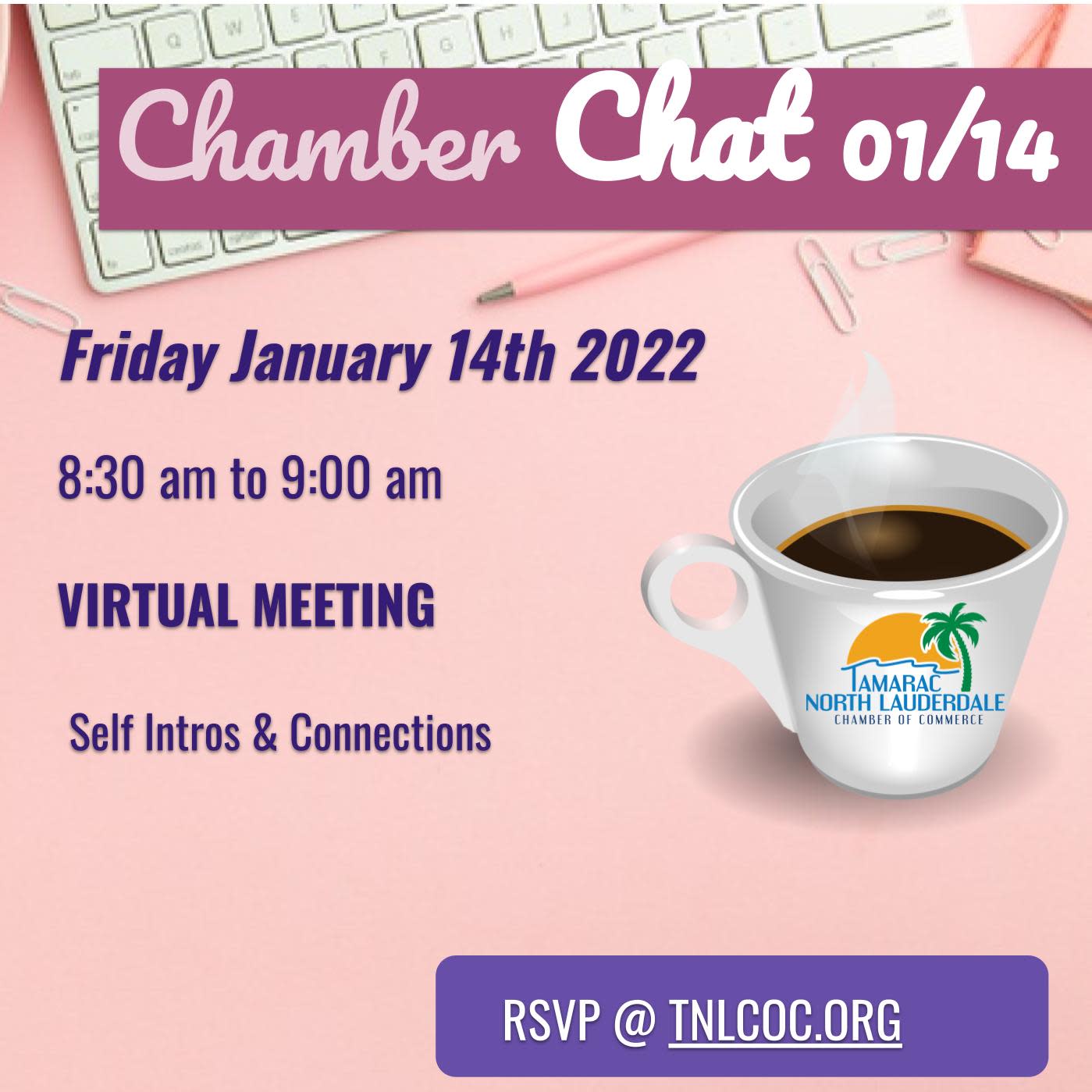 Virtual Chamber Chat - self intros and conversation. Everyone welcome to attend for the full 30 minutes with cameras on.