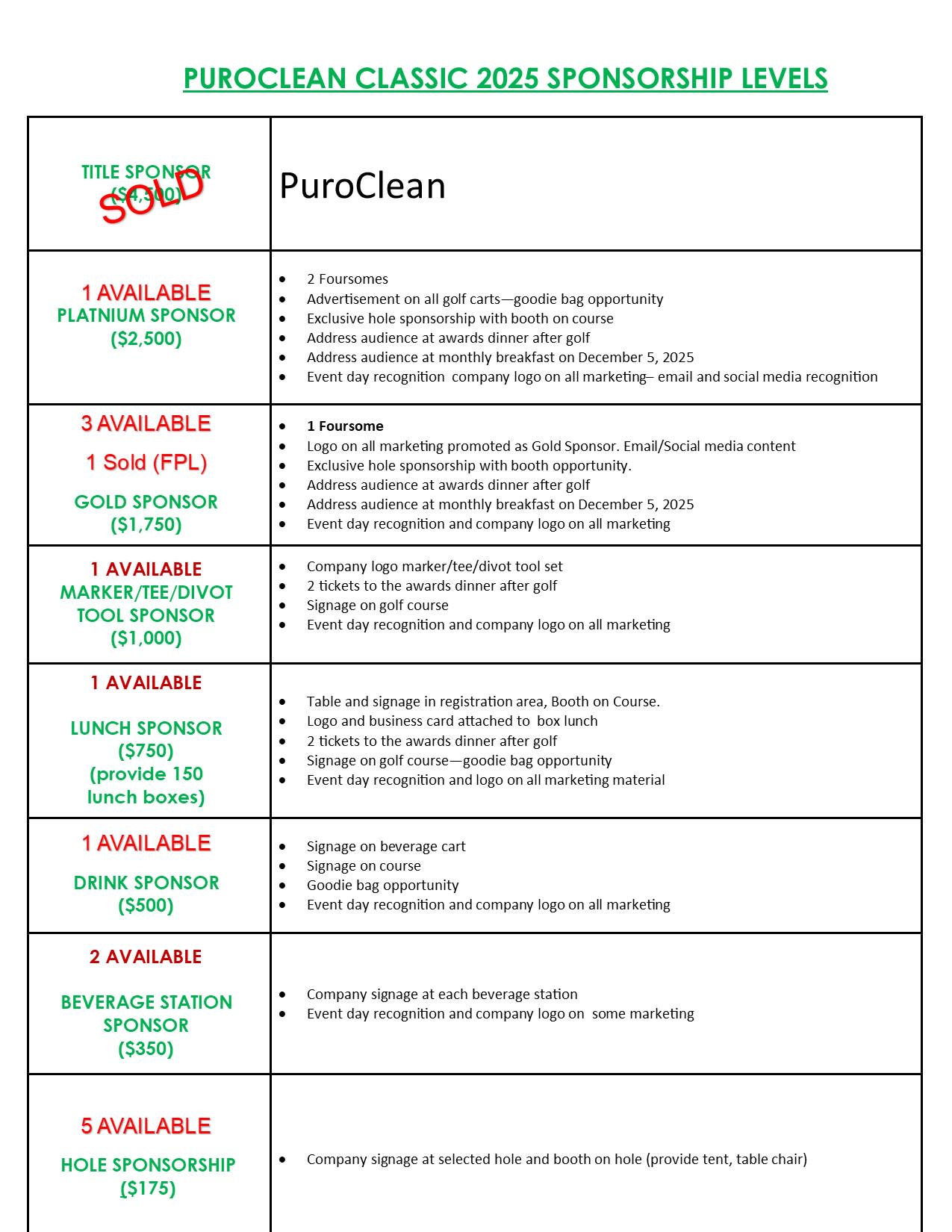 The PuroClean Classic is an annual golf tournament hosted by the Tamarac North Lauderdale Chamber of Commerce, with PuroClean as the title sponsor. It is held at the Woodmont Country Club in Tamarac, Florida. The event raises funds for the Chamber's charitable foundation, supporting educational programs and small business projects in the local community.